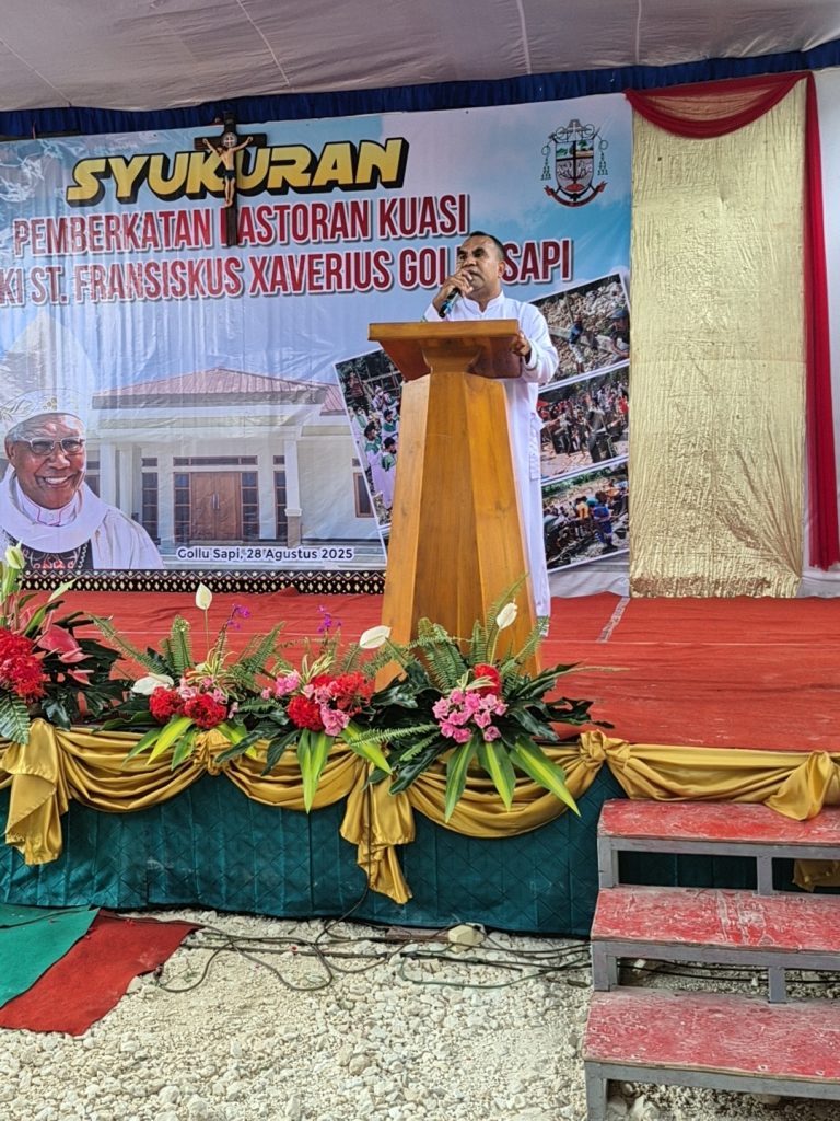 Sementara itu, Pastor Kuasi Paroki Golu Sapi, Romo Emanuel Lezo PR (Romo Yoman), menyampaikan rasa syukurnya atas dukungan banyak pihak. Ia mengingat kembali perjuangan awal pembangunan pastoran yang hanya dimulai dengan dana Rp20 juta dan dorongan dari Uskup untuk menggalang dana. Setelah tiga tahun sepuluh bulan, pastoran megah itu akhirnya berdiri. “Kami berterima kasih kepada Bapak Uskup, para donatur, arsitek, tukang, dan panitia. Semoga pembangunan terus berlanjut, termasuk dapur dan gereja,” katanya.