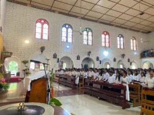 Perayaan ekaristi kudus dipimpin langsung oleh Yang Mulia Bapak Uskup Mgr. Edmund Woga, CSsR, didampingi para imam konselebran; Rm. Louis Keban, Pr., Rm. Paskalis Kristian Loy, Pr., dan Rm. Atanasius T. Ndate, Pr. Kehadiran para gembala umat ini memberi warna tersendiri pada perayaan ekaristi yang sedang berlangsung. Perayaan agung ini menjadi bagian dari rangkaian kegiatan pastoral Gereja Keuskupan Weetebula yang bertujuan memperkuat kehidupan iman umat, teristimewa kaum muda pada umumnya serta para krismawan-krismawati.