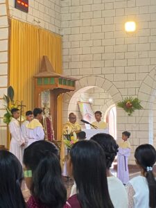Perayaan ekaristi kudus dipimpin langsung oleh Yang Mulia Bapak Uskup Mgr. Edmund Woga, CSsR, didampingi para imam konselebran; Rm. Louis Keban, Pr., Rm. Paskalis Kristian Loy, Pr., dan Rm. Atanasius T. Ndate, Pr. Kehadiran para gembala umat ini memberi warna tersendiri pada perayaan ekaristi yang sedang berlangsung. Perayaan agung ini menjadi bagian dari rangkaian kegiatan pastoral Gereja Keuskupan Weetebula yang bertujuan memperkuat kehidupan iman umat, teristimewa kaum muda pada umumnya serta para krismawan-krismawati.