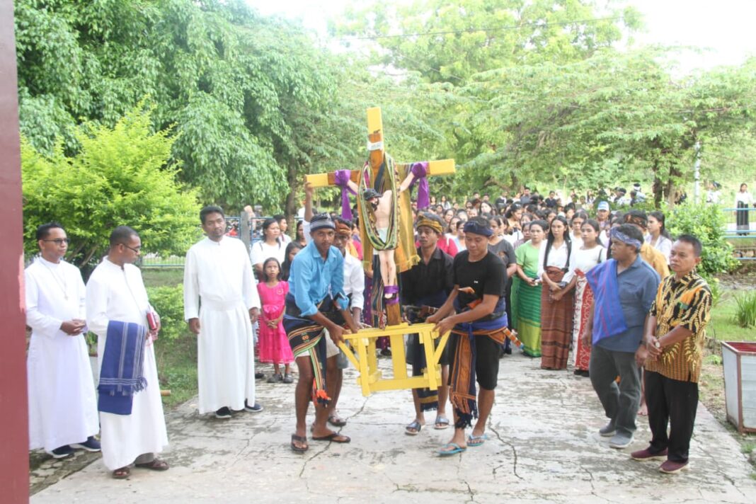 “Bawalah seluruh beban hidup, suka dan duka, ke bawah kaki salib Yesus,” ujarnya.