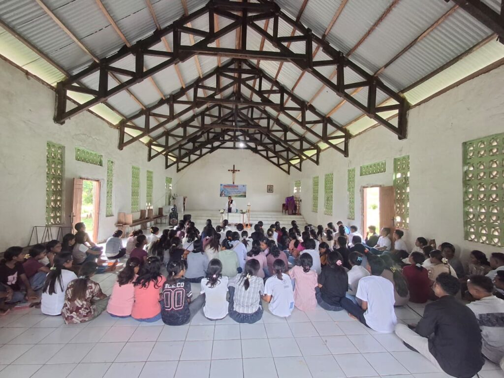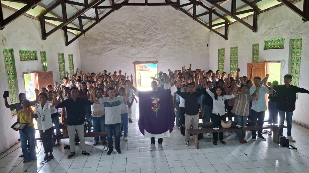 Sebanyak 120 Orang Muda Katolik (OMK) mengikuti kegiatan rekoleksi dan pengakuan dosa di Stasi Mareha, Paroki Sta. Elisabeth Bondo Kodi, Senin (23/3/2026). Kegiatan ini menjadi bagian dari persiapan menyambut Hari Raya Paskah sekaligus upaya menumbuhkan iman sejak usia muda.